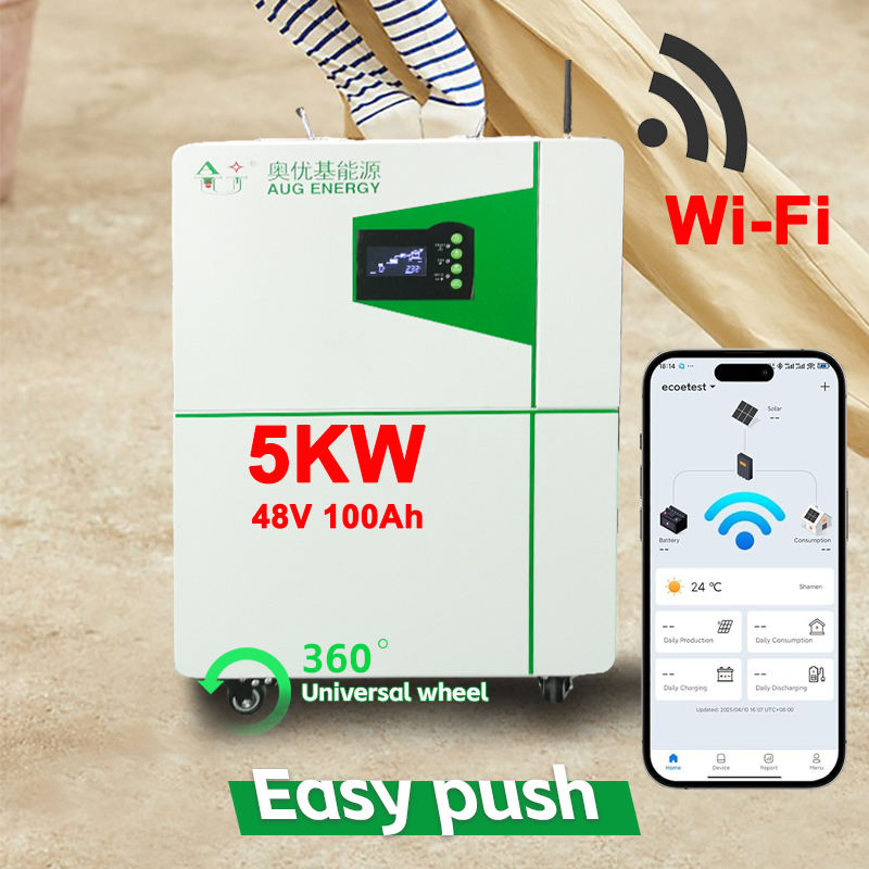Solar BESS and Inverter All in One 48V 100Ah with MPPT and Wifi Function for Home or Outdoor and Power EV Hybrid ESS with Wheels