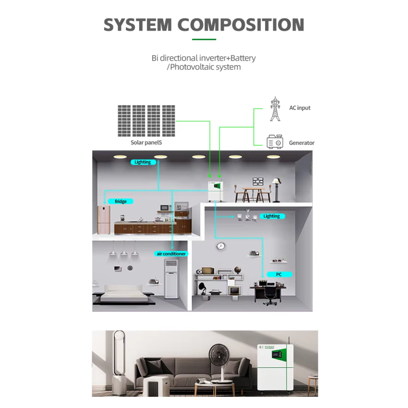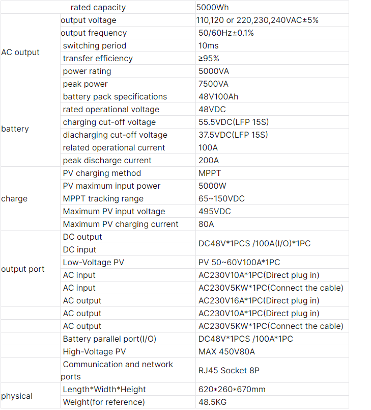 Solar BESS and Inverter All in One 48V 100Ah with MPPT and Wifi Function for Home or Outdoor and Power EV