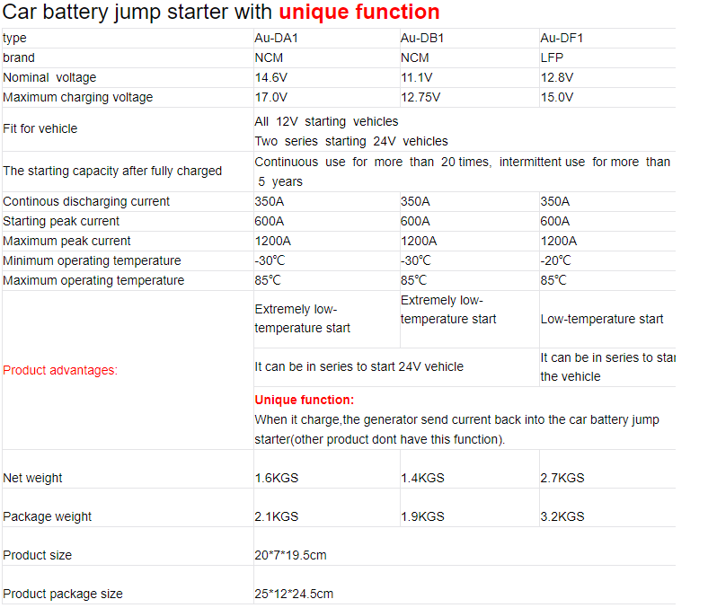 2.Please charge the car battery jump starter to keep the 80% SOC or above.